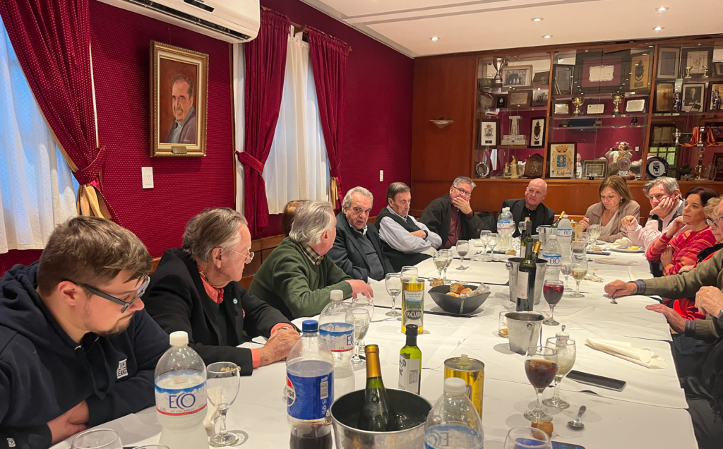 De una extensa trayectoria académica, funcionario de organismos internacionales, colaborador del gobierno de Raúl Alfonsín, Brian Thomson asistió a un almuerzo con integración de la Fundación Rojas, que lo muestra en un encuentro informal.