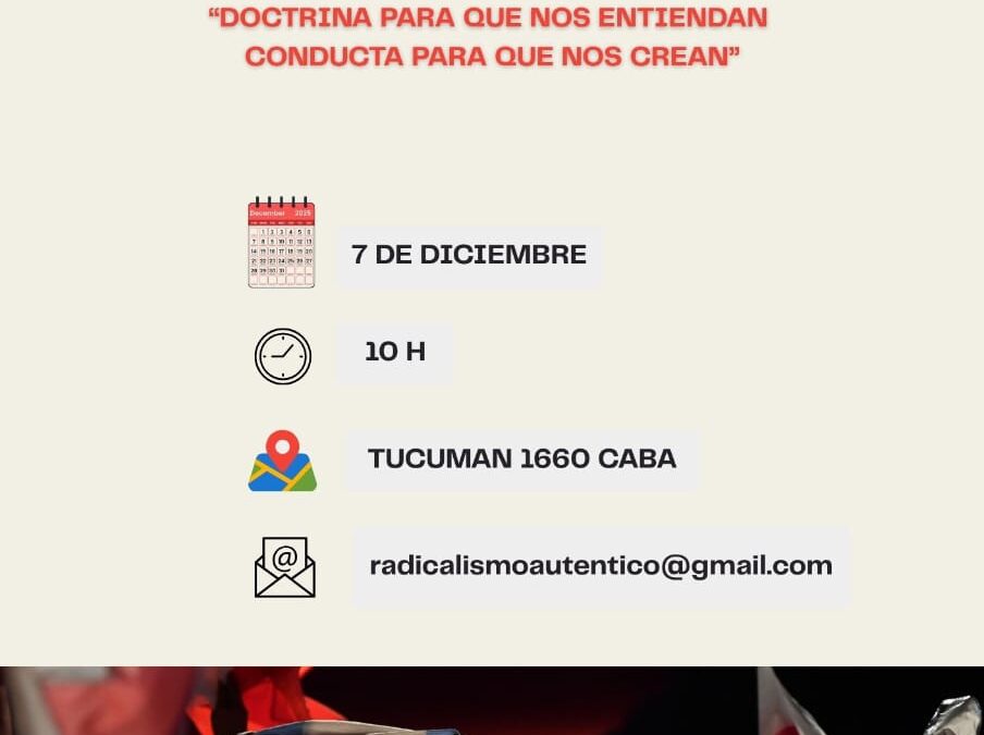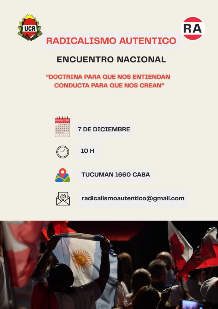 El próximo domingo 7 de diciembre el radicalismo se reune para debatir varios temas de interés nacional y partidarios, a partir de las 10 horas, en la sede del comité nacional de la Unión Cívica Radical, GTucumán 1660, CABA